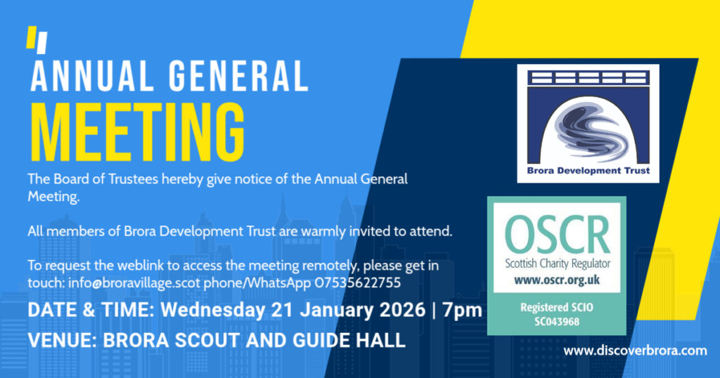 The Trust set up and manage the Discover Brora website and social media platforms, to provide helpful information for visitors and a platform for advertising for local businesses. The Discover Brora brand was created by a group of local volunteers who are passionate about Brora and the community they live in.