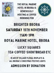 Admission by donation – all funds go to Brora’s floral displays and Christmas lights. Let’s make our village sparkle.