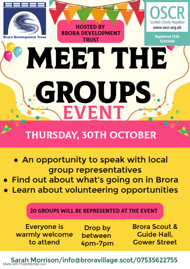 With 20 groups represented, this is a fantastic opportunity for people living and working in Brora to meet and speak with group representatives, find out more about what’s going on in Brora and learn about volunteering opportunities.